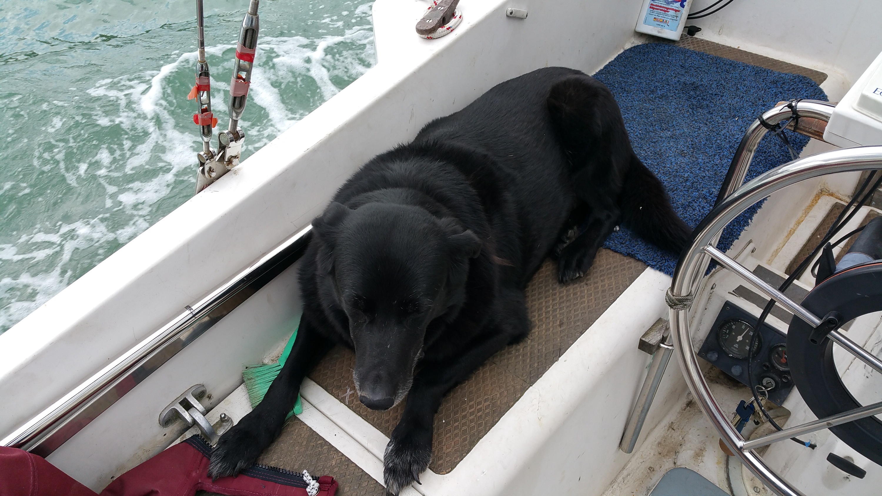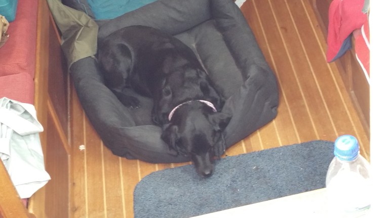 Dylan sleeping on Watch (he point blank refused to go back into the cabin)…